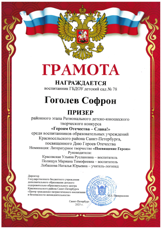 Поздравляем Полищук Мариану Тимофеевну с победой в конкурсе педагогических достижений Санкт-Петербурга в номинации "Воспитатель года"