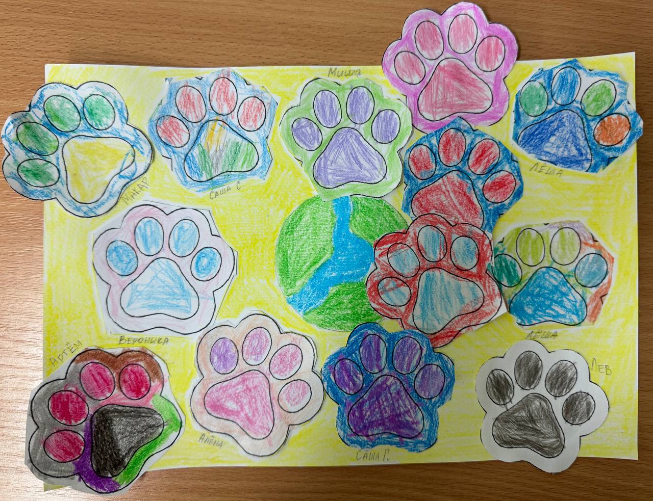 Ребята группы №15 «Крабики» поговорили о том, насколько важно любить и оберегать братьев наших меньших. В нашем саду уже стало традицией помогать приютам, в которых живут кошки и собаки, и этот дружественный жест нашел отражение в коллективной работе "Лапки дружбы".