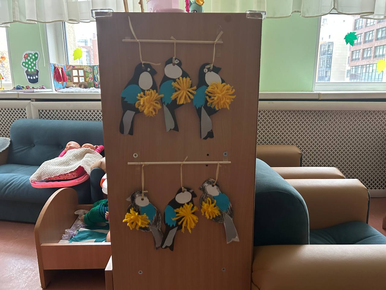 Дети средней группы № 5 «Морские коньки» сделали воробьёв из картона.