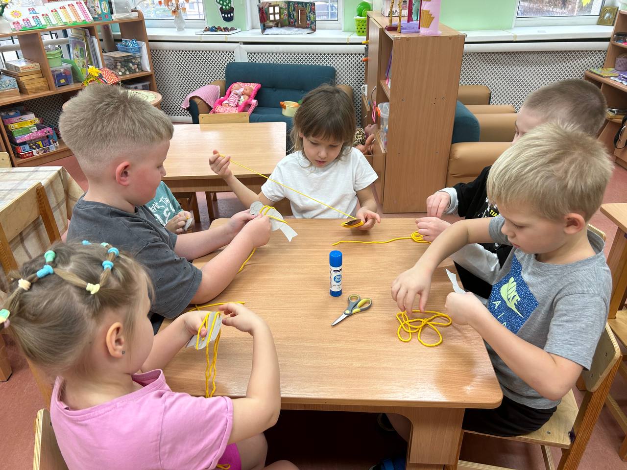 В группе №1 «Рыбки», ребята решили создать ярких птичек из картона и ниток, с удовольствием наматывая нитки на картон. Птички получились необычные и веселые.