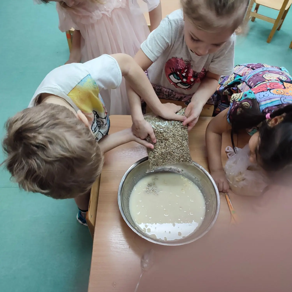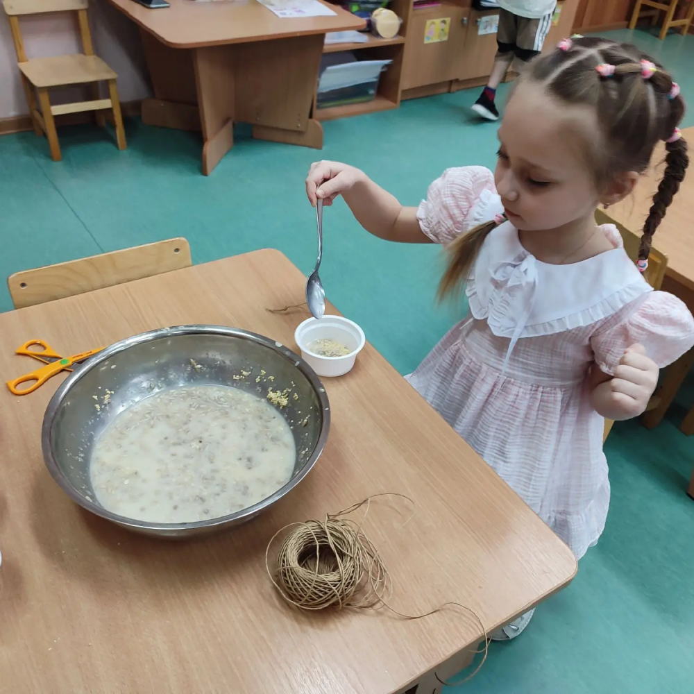 Дети средней группы № 17 «Дельфин» решили изготовить для пернатых вкусные угощения. Смешав корм для птиц с водой, желатином и мукой ребята смастерили экологичные кормушки.