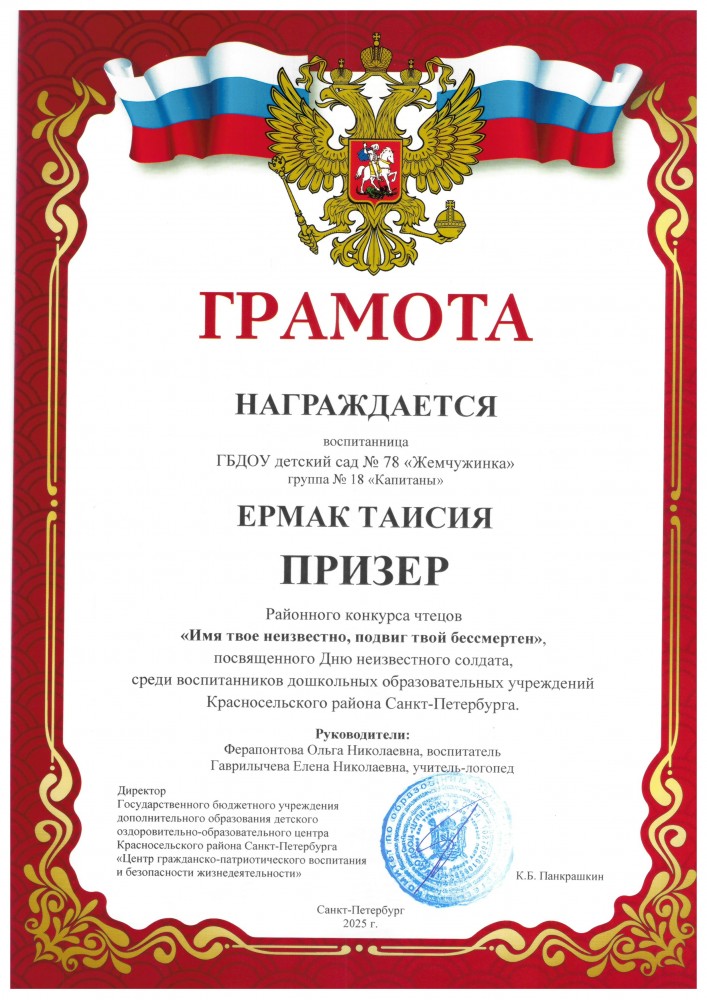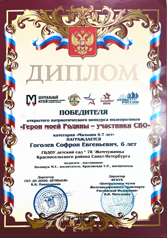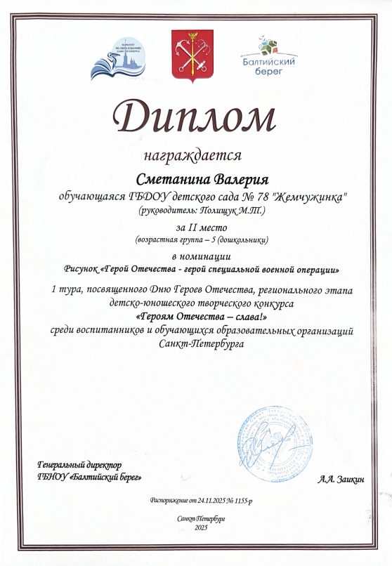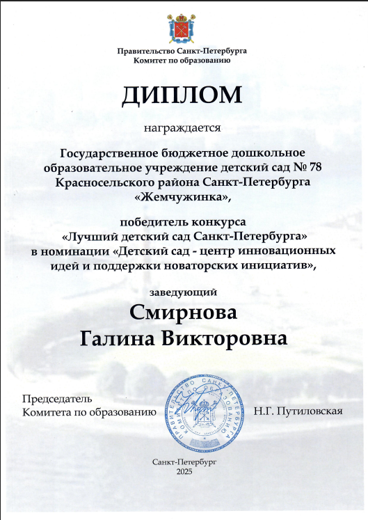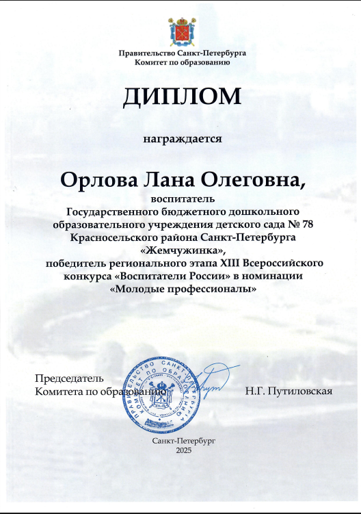 Поздравляем Полищук Мариану Тимофеевну с победой в конкурсе педагогических достижений Санкт-Петербурга в номинации "Воспитатель года"