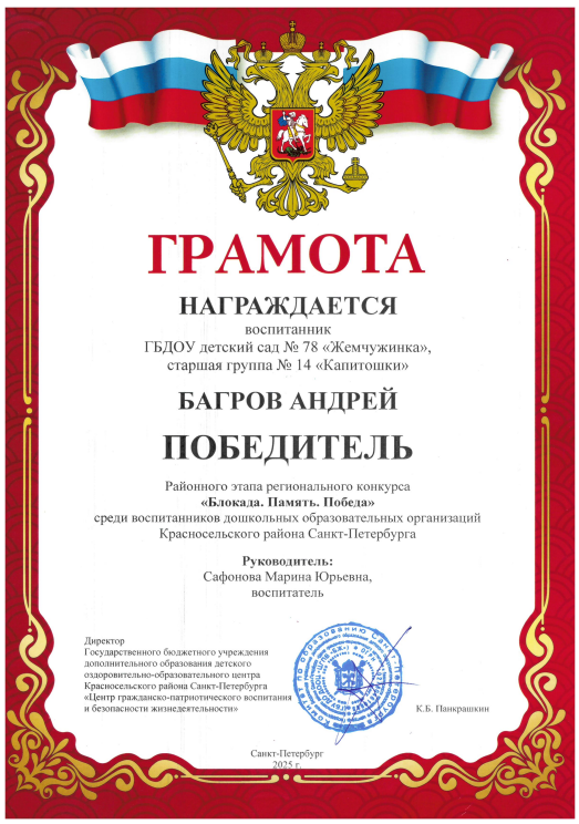2 октября 2023 года на базе школы № 547 состоялась Торжественная церемония награждения педагогов Красносельского района Санкт-Петербурга ведомственными наградами Министерства Просвещения Российской Федерации. За многолетний добросовестный труд и значительные заслуги в сфере образования почетное звание «Почетный работник сферы образования Российской Федерации» было присвоено заместителю заведующего по воспитательно-образовательной работе Нефедовой Елене Борисовне.