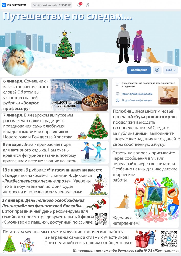 С 02.09.2024 началось внедрение проекта в практику работы нашего детского сада. С материалами проекта вы можете познакомиться в группе ВКонтакте "Путешествие по следам".